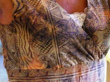 As the fabric did not have much structure, the empire waist tended to sag, even when interfaced. To counter the problem, I added a wide piece of elastic (also from the stash) across the front, securing it at both side seams.
