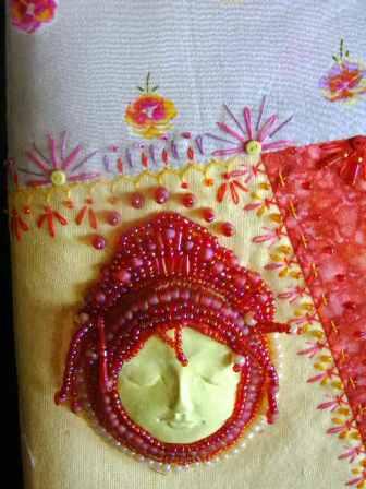 Crazy Quilting is a favorite activity and I love making these little “Beaded Goddess Faces”.