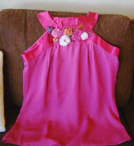 While searching through The Stash I found some small pieces of dark rose colored silks. One was a sheer and one was a duipioni. Neither was large enough to make a top individually, but together they would….