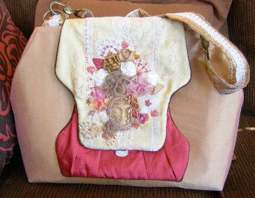 The pattern was a modified Indygo Junction Streetcar Bag. The flap just called out for embellishment – and the bag was the perfect size for carrying all the items required for summer travel!