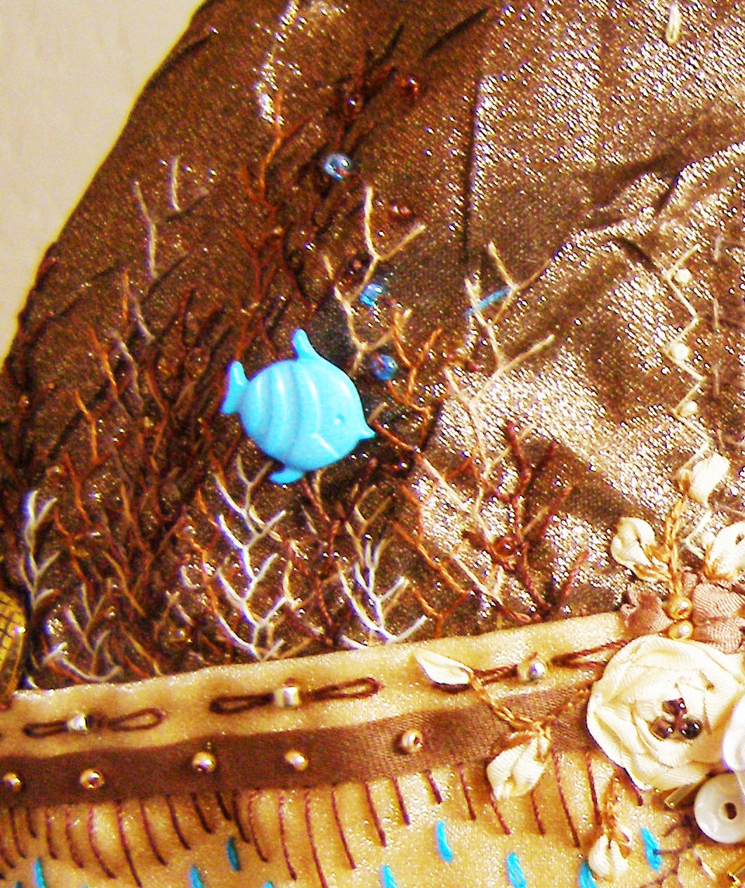 The blue fish button was purchased specifically for this purse. The Sea Scape just cried out for just such a fish!