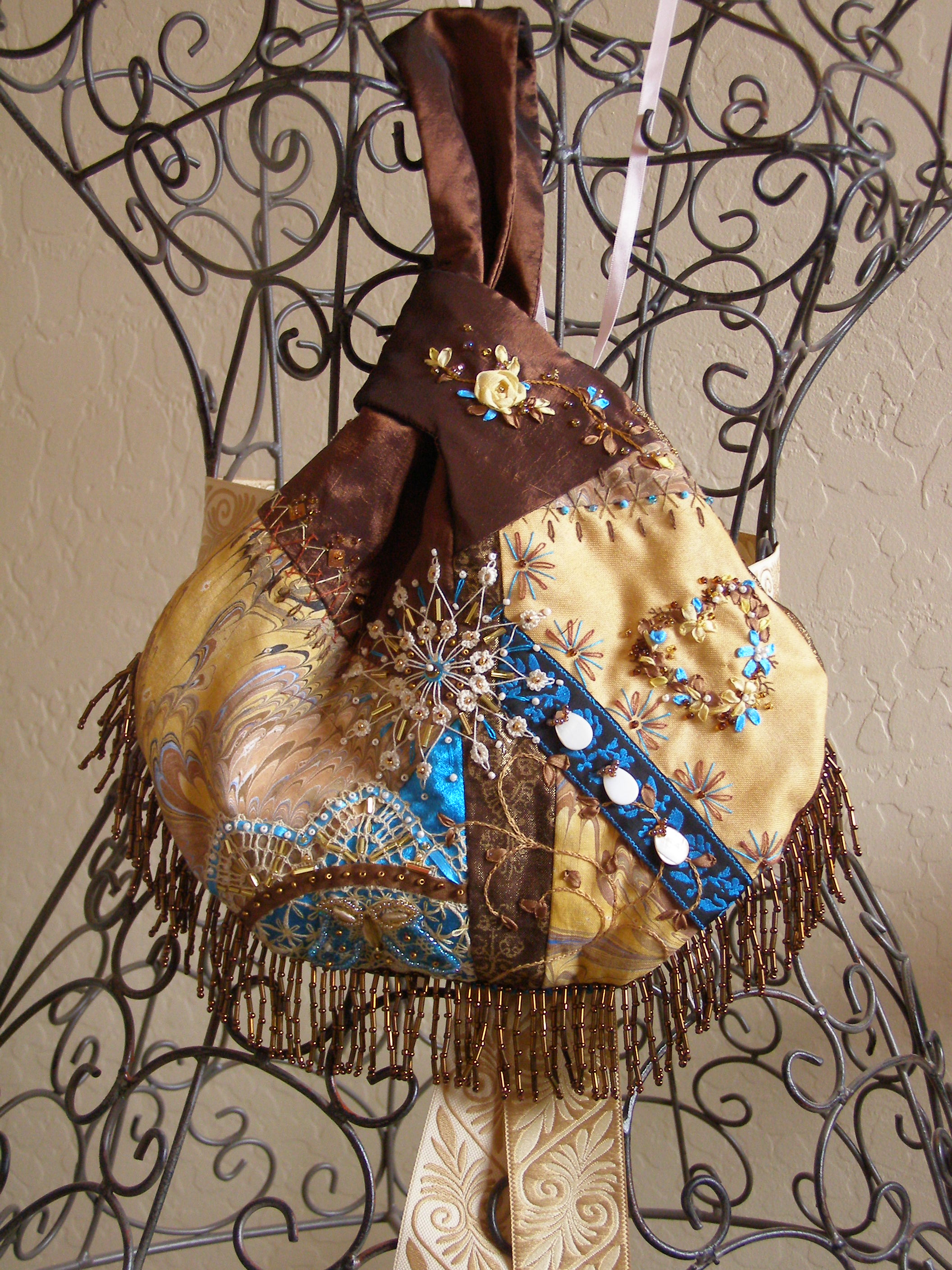 This Prom Purse was the Original Destashification Prom Purse. Fabrics and trims from The Stash were combined in this prototype.