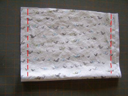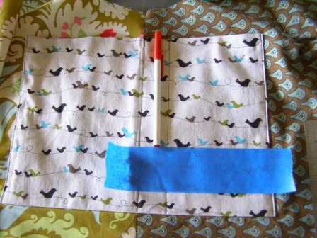 Using a pencil or a disappearing marker (they are soooo cool!) draw a line on the pocket connecting the two red dot pins. This will be the sewing line.