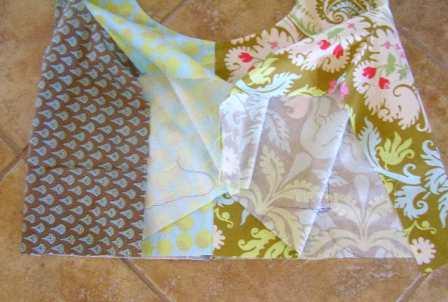 Cut out the four bag pieces. We will be working first with the two pieces for the lining. The lining of the bag pictured above is made from the pieces numbered 1 and 4 in the photo.