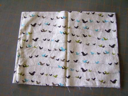 Take the pieces that will form the outside of your bag and place them RIGHT SIDES together. Sew them together along the side seam, just the same as the two lining pieces were sewn together in Photo 6.