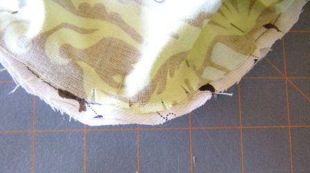 Then pin all the way around.  From the base side, Photo 5 looks ready to be sewn.