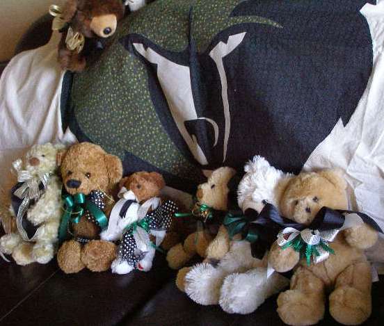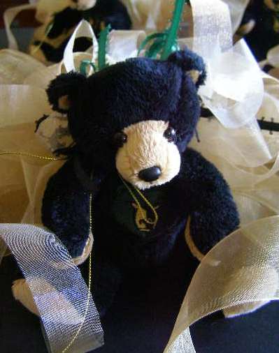 The school colors are black, green and gold. My Stash provided numerous ribbons in appropriate colors to dress up the bears!