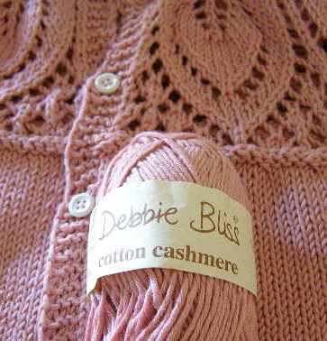 The yarn was in The Stash, Debbie Bliss Cotton Cashmere in a Ballet Pink. Cotton Cashmere is very soft.