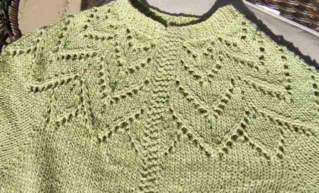 By knitting the neckband after the lace pattern I was able to try to sweater on to determine if the yoke was long enough before dividing for the body and the sleeves.