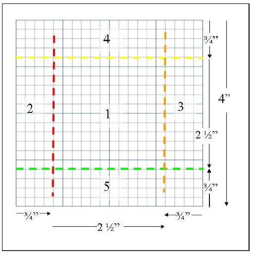 Following the same process used for Block 1, draw the diagram on graph paper. Place Piece 1 right side up on the back side of the graph paper – hold it up to a window to verify it is correctly located.