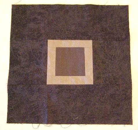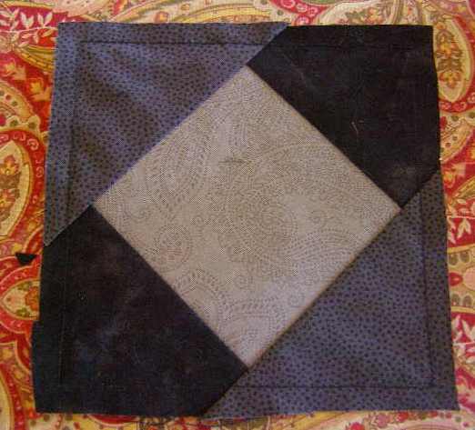 The first 4″ design block is a Square in a Square, based on the Paper Piecing How-To from the Quilter’s Cache Link.