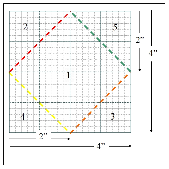 The Paper Piecing Diagram should be drawn on graph paper as shown in the Photo.