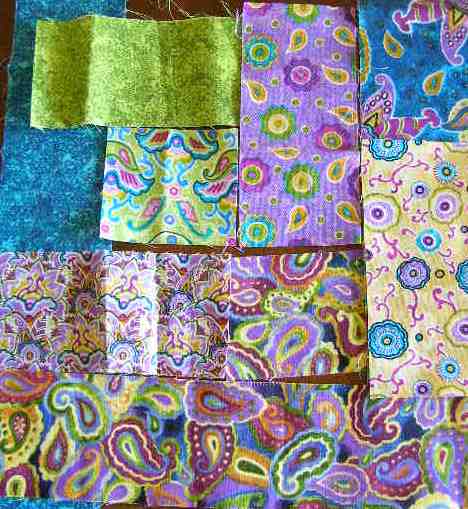 Remaining jelly roll fabric and pieces of the other fabrics will be cut into pieces to create the binding.