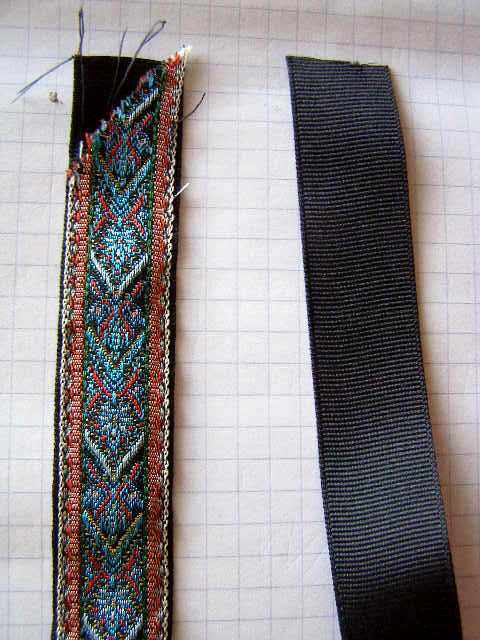To add strength and protect the back of the jacquard ribbon, black grosgrain ribbon was sewn to the back.