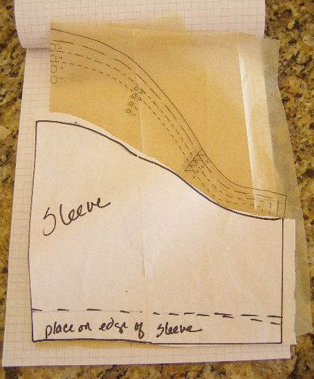 As shown in the photo to the left, the 2XL sleeve was large enough for the sleeve head to be cut higher than the self-drafted pattern, but not as high as the McCalls pattern.
