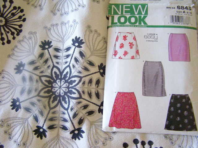 A NYC dinner will require a skirt outfit. A remnant of upholstery fabric (yep, upholstery fabric) seemed perfect for a skirt. The Pattern Stash offered New Look 6843.