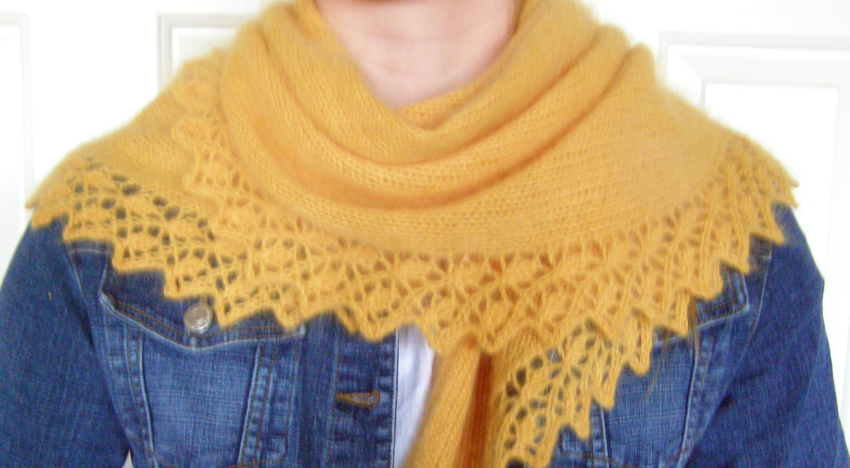 The lace pattern and the triangular ends created a gentle curve to the scarf which allows it wrap nicely.