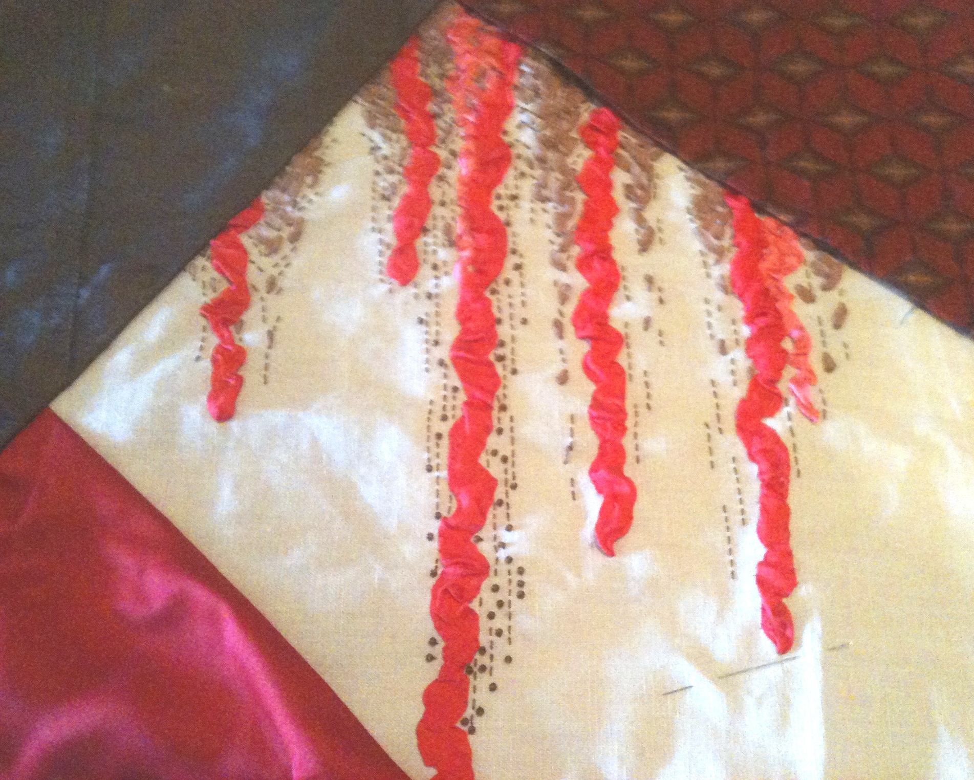 Just in case one is of the opinion that years of sewing experience prevents mistakes – I carefully added the embellishment to what I thought was the lower front of the skirt. And then had to remove the seams and start again – because I had sewn it to the back!