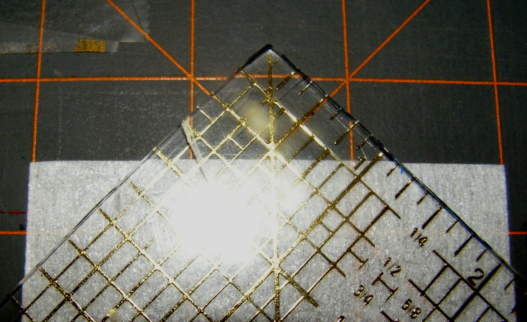 1. Cut interfacing as shown in Photo 1. Use Photo 2 as guide to cut angles into one narrow end.