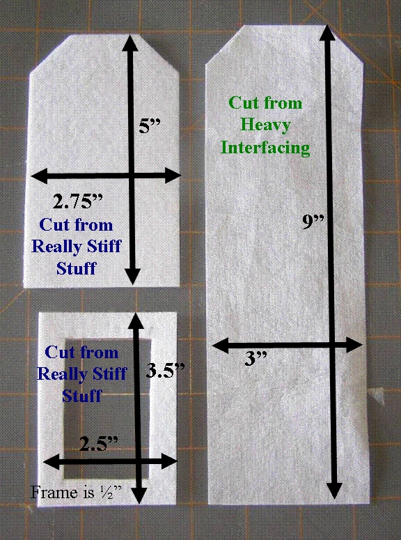 1. Cut interfacing and Really Stiff Stuff (RSS) as shown in Photo 1. Use Photo 2 to cut angles into ends.