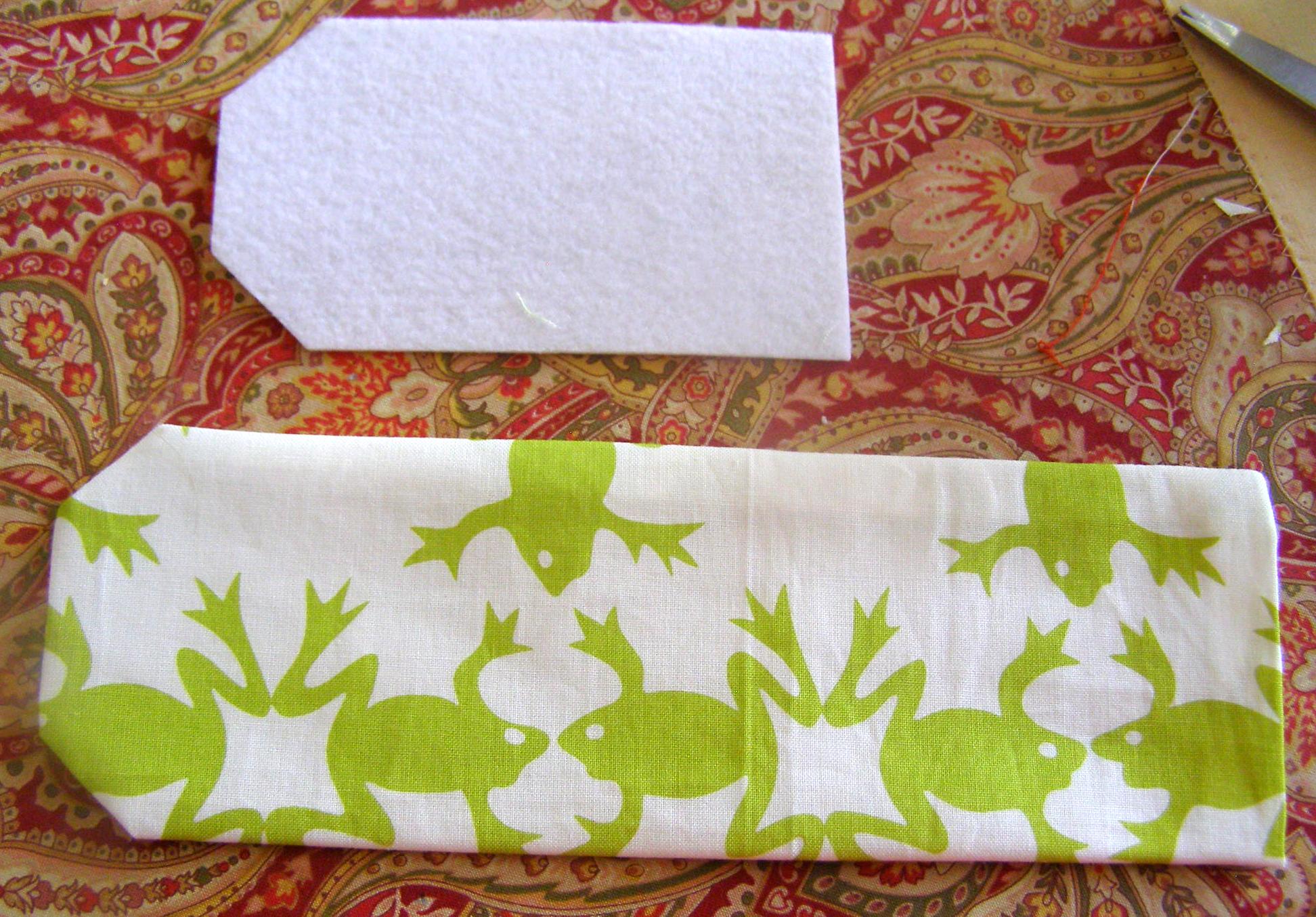 11. Turn tag right side out. Press from fabric only side (pressing the plastic is not a good idea).