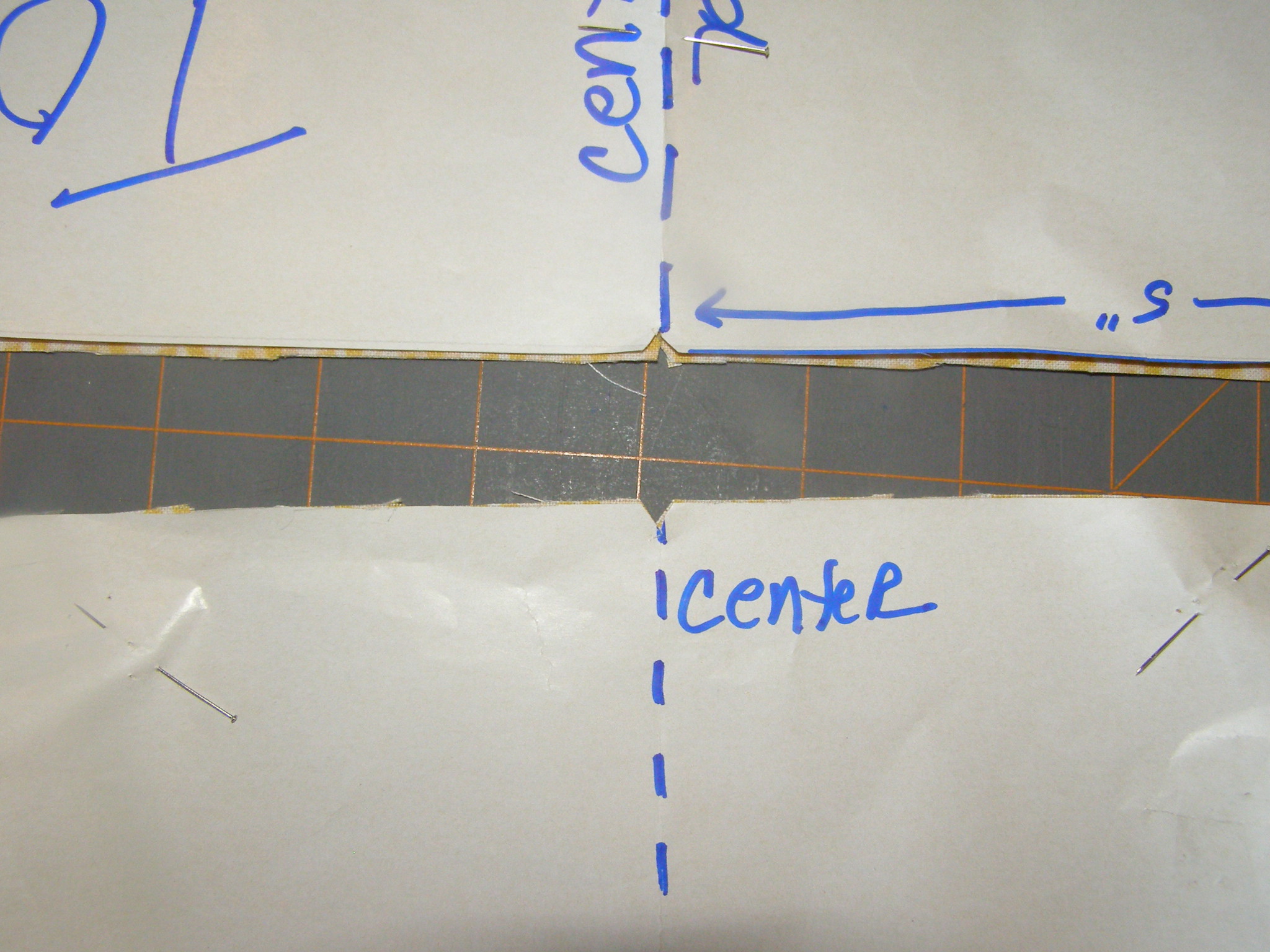Fold to find vertical centerpoint as noted on pattern in photo.