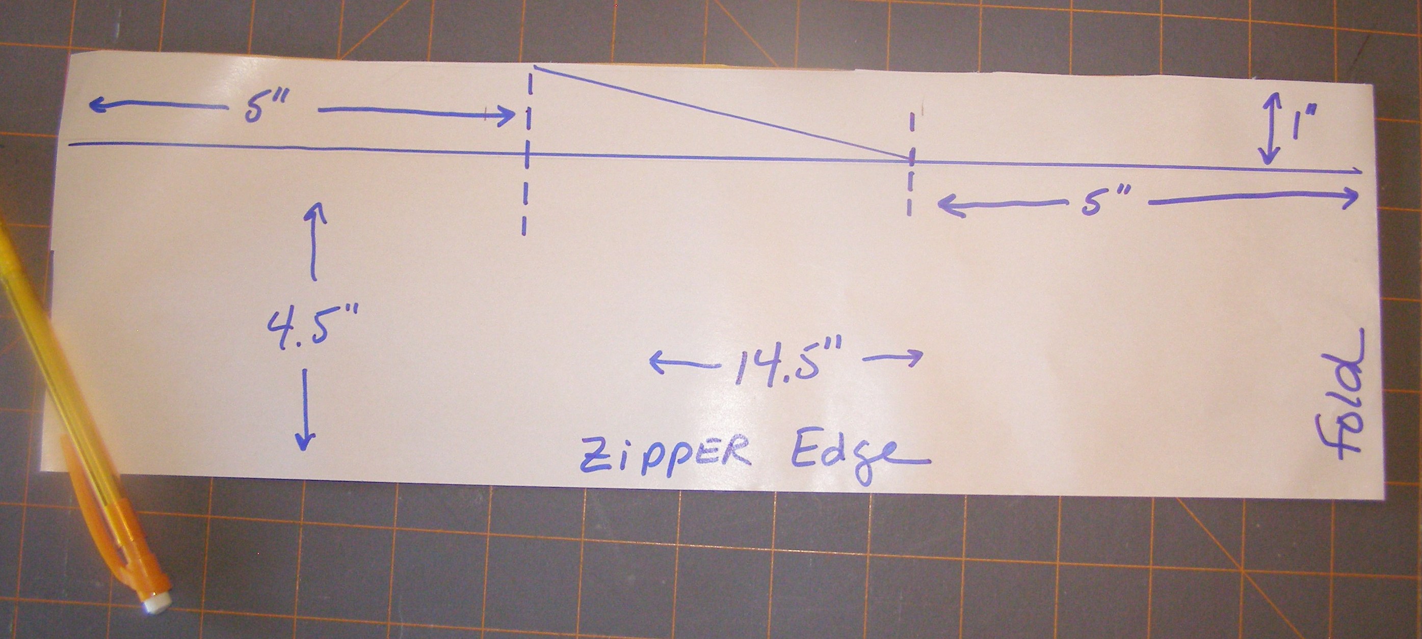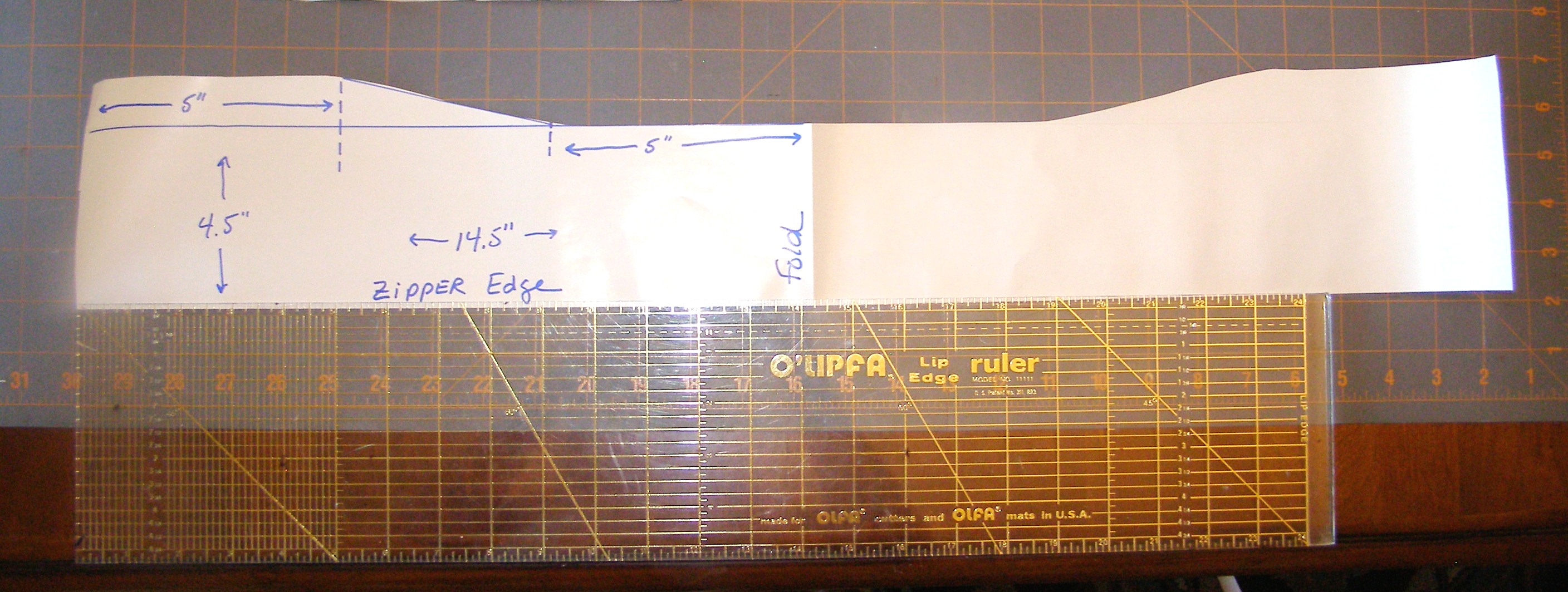 The slashed area in the above photo shows is the area to be cut away to form the curve of the bag top.