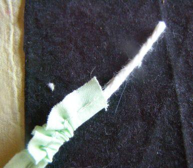 Pull the white cording out of the cording fabric about 1″ and cut the white cording off. The inch of piping without the cording will allow you to stitch over it to start.