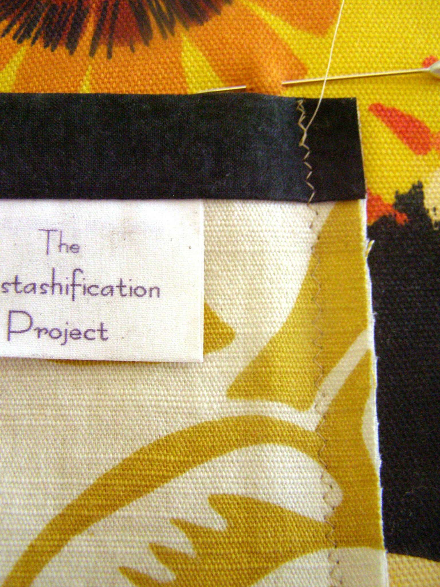 Zigzag down the right and left edges of the pockets about 3/8″ from raw edges as shown in photo.