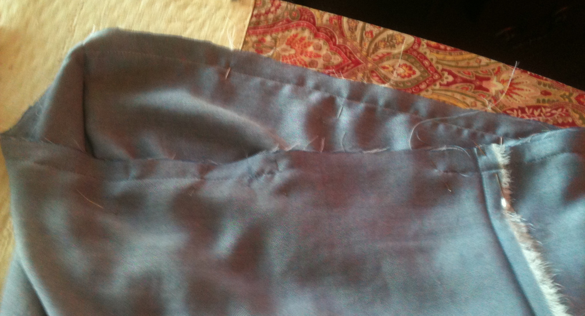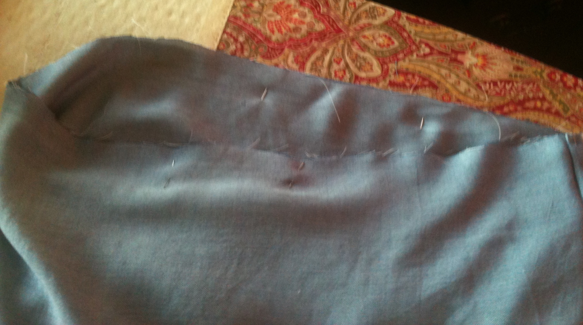 - Fold fabric in half (the long way) RIGHT SIDES together and pin the long edges together. (OK…so pinning is not all that much fun, but fabrics that flow also tend to move while sewing, so yes…..pinning.) …………………………………………….. ……………….