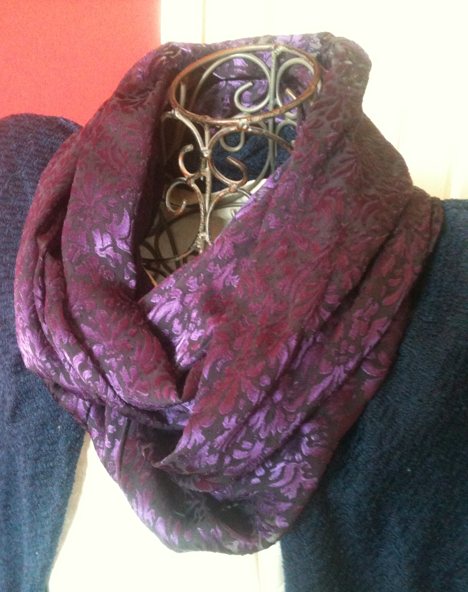 She sewed this beautiful scarf for me using a purple burnout fabric which has been in The Stash for years.