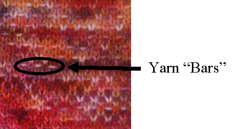 Horizontal Yarn “Bars” created by the Yarn Forward/Yarn Back in front of the slipped stitch in Rows 1 and 3.