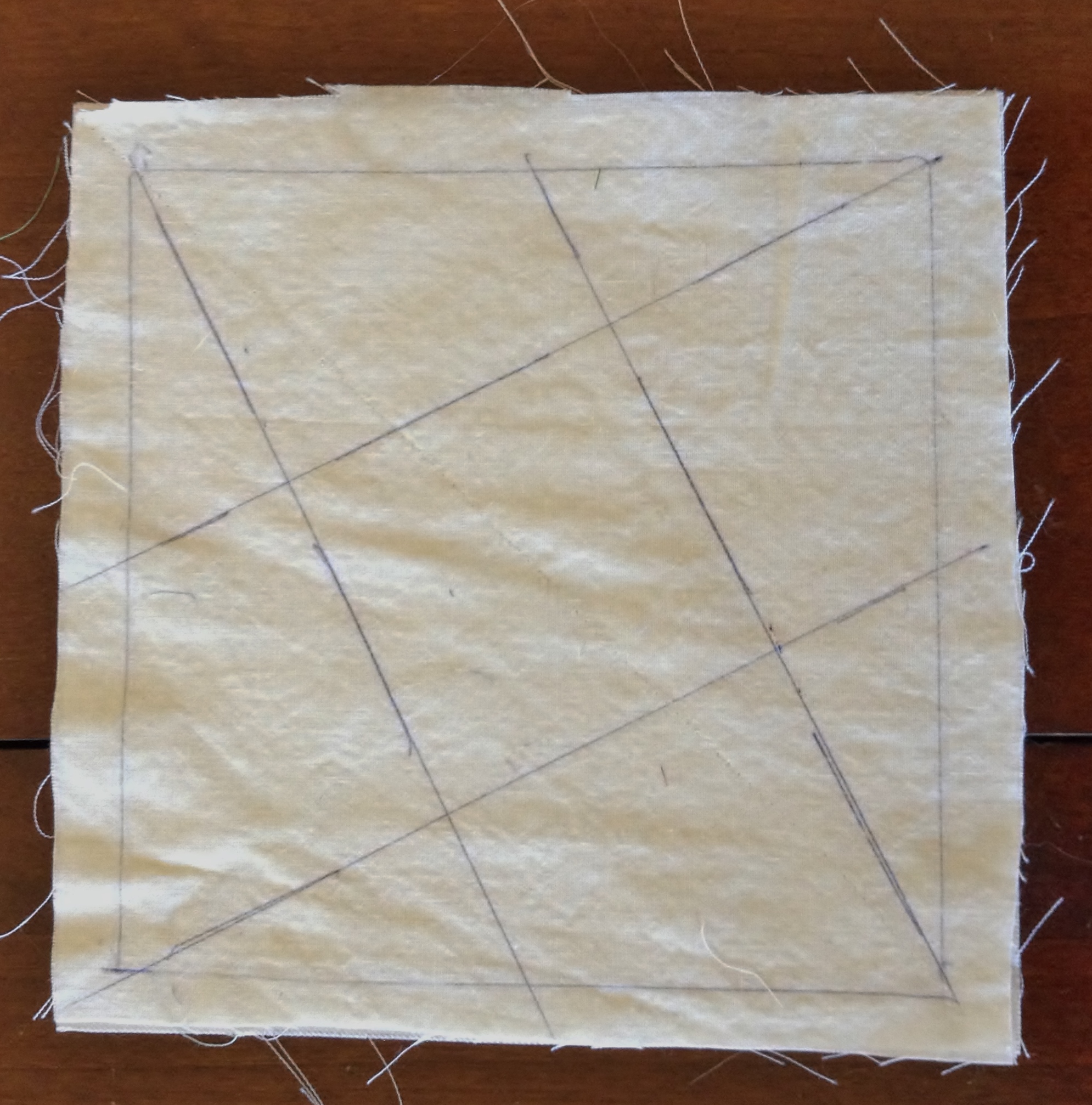 The result were grey fabric foundation blocks with the sewing lines drawn on the back. (The example is in off-white as the lines do not show well against grey in a photo.)
