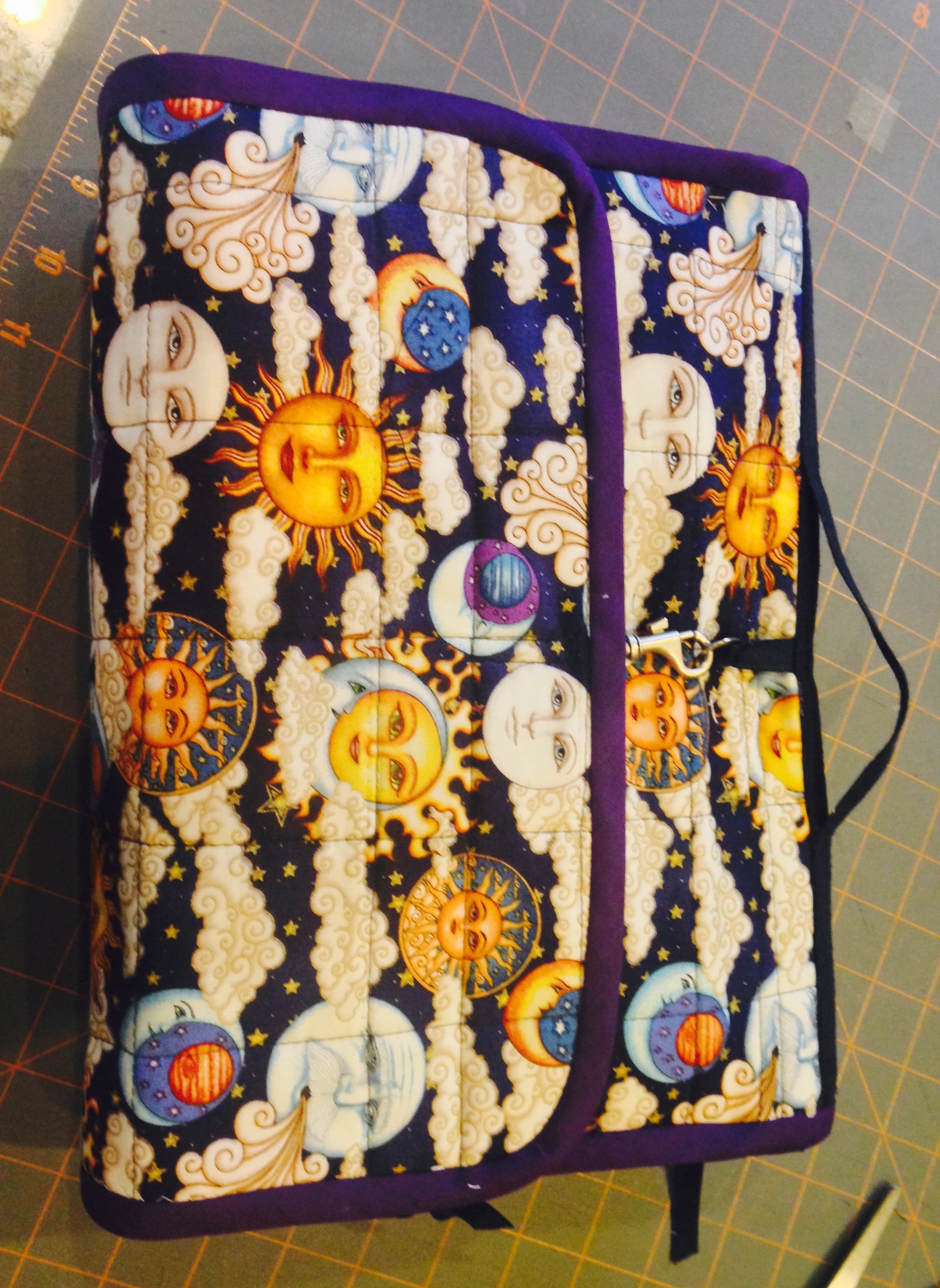 We visited The Stash and she selected a Stars and Moon Face fabric.  A yellow quilting cotton was used for the lining.