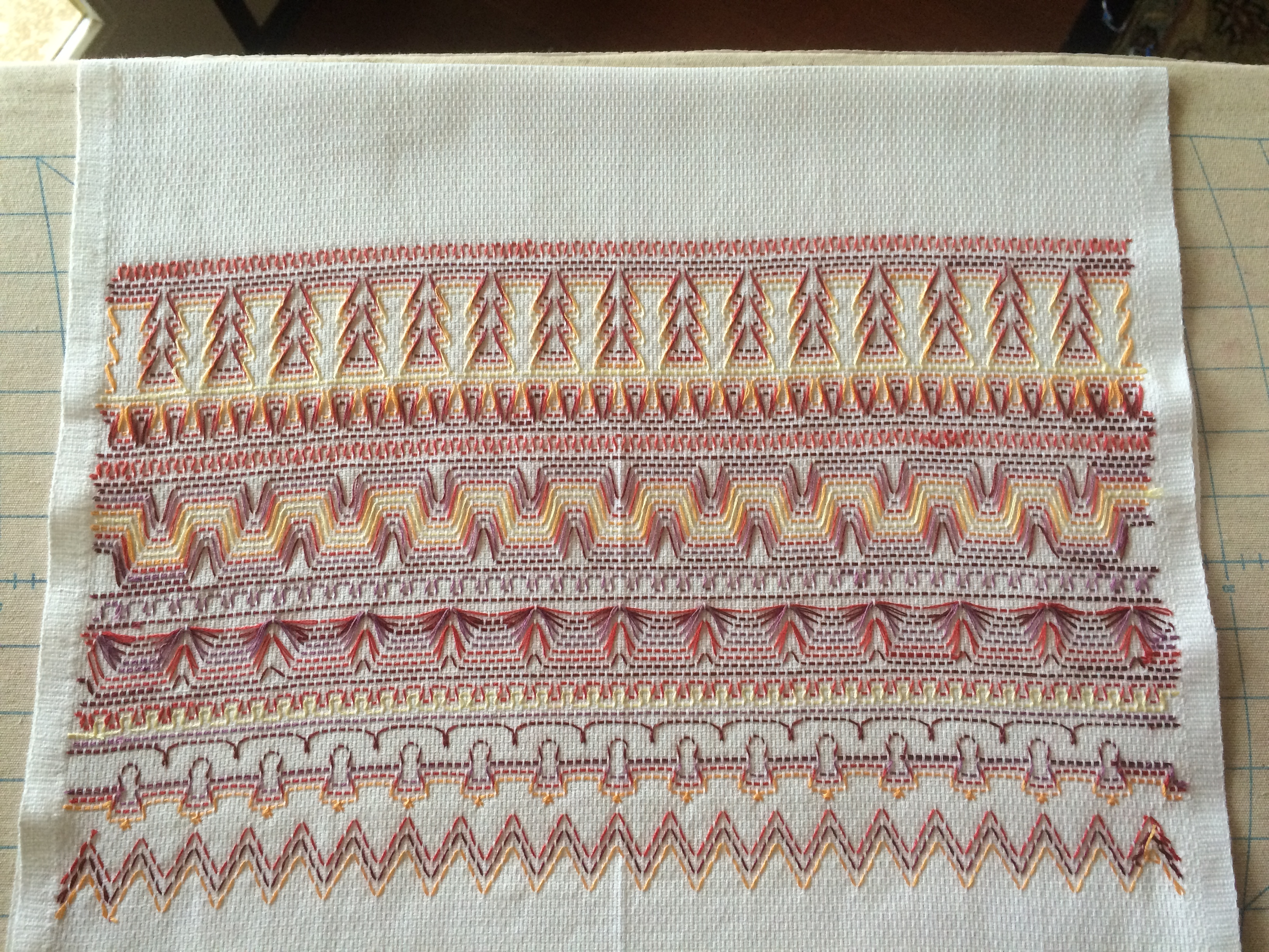 • I don’t really have a pattern as I just made this design up as I stitched. The second photo (lying on its side) in the blog is enlarged and was intended to serve as the “pattern”. This photo shows the entire pattern, but may be too “busy” to be able to pick up individual thread movement.